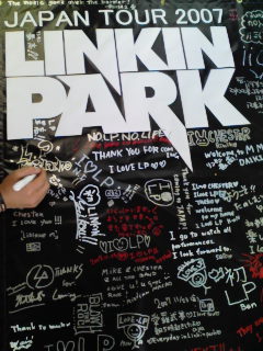 2時に到着してすぐ物販に並んでTシャツ購入&装備→荷物をクロークへ。ゲートに向かう途中にmixiでやってた寄せ書き企画を発見したのでさりげなく参加、書き込みしてきました。右手首にホータイのひともちらほら!!(※チェスの骨折事件参照)